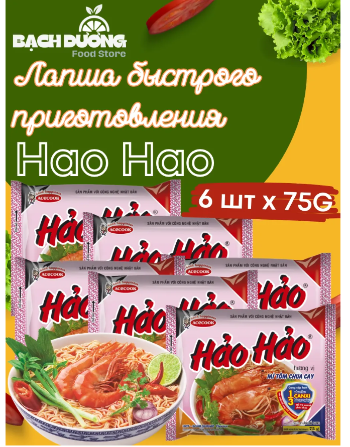Лапша быстрого приготовления HaoHao со вкусом креветок 6шт