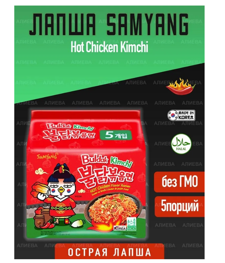 Лапша быстрого приготовления Samyang Hot Chicken Kimchi, 5шт х 140, Корея