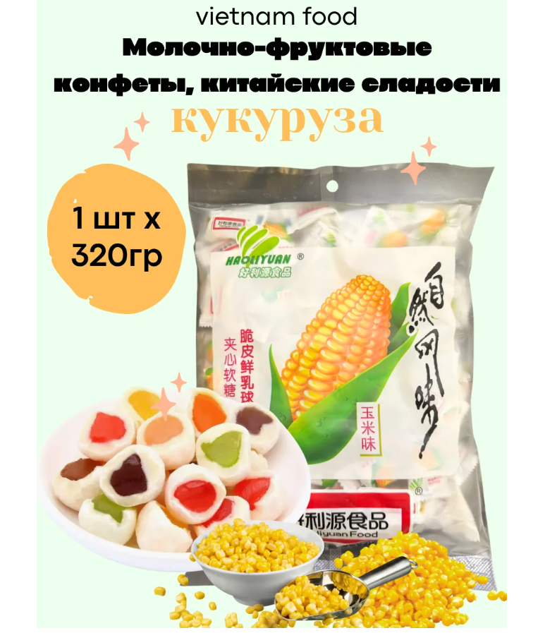 Молочно-фруктовые конфеты, китайские сладости 320г