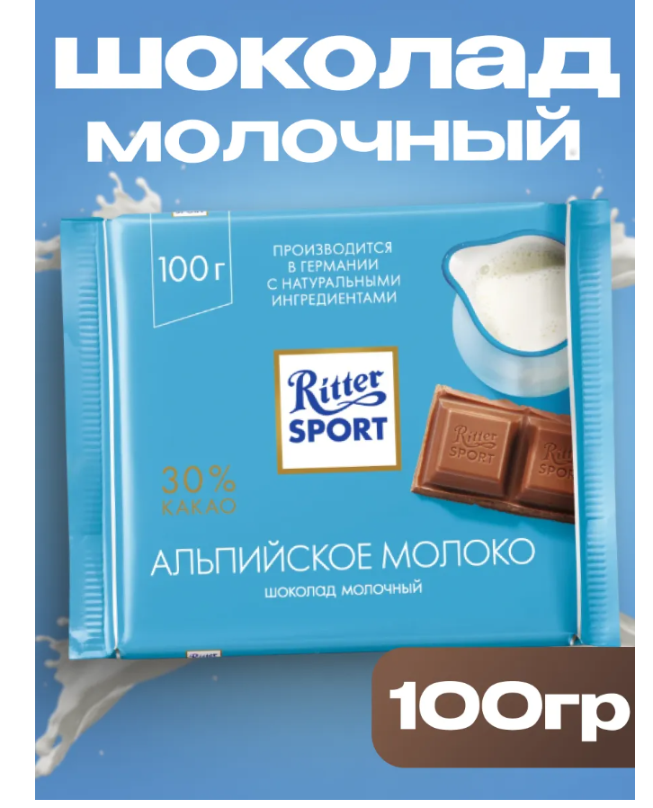 Молочный шоколад Риттер спорт Альпийское молоко, 100 г
