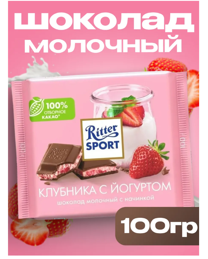 Молочный шоколад Риттер спорт Клубника в йогурте, 100 г
