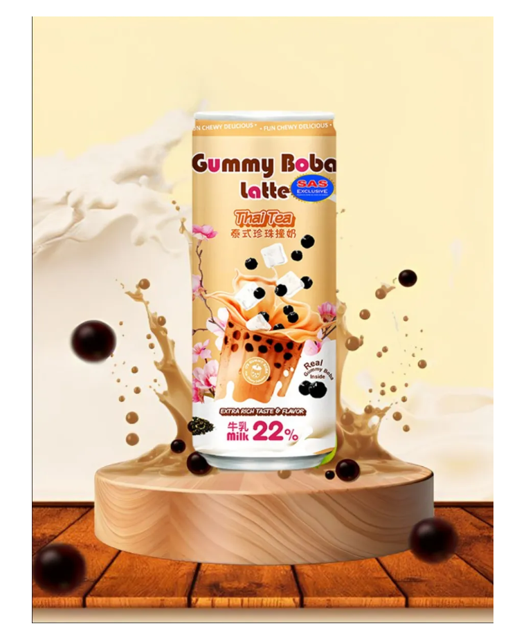 Напиток бабл ти Gummy Boba Latte тайский чай, 470 мл