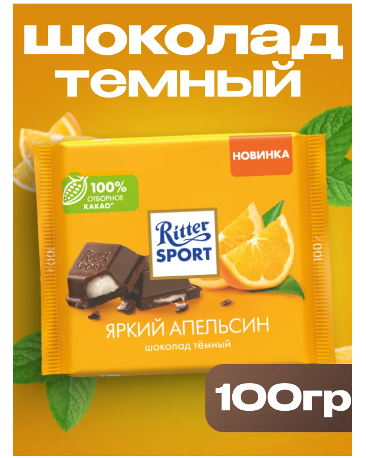 Темный шоколад Риттер спорт Апельсин, 100 г