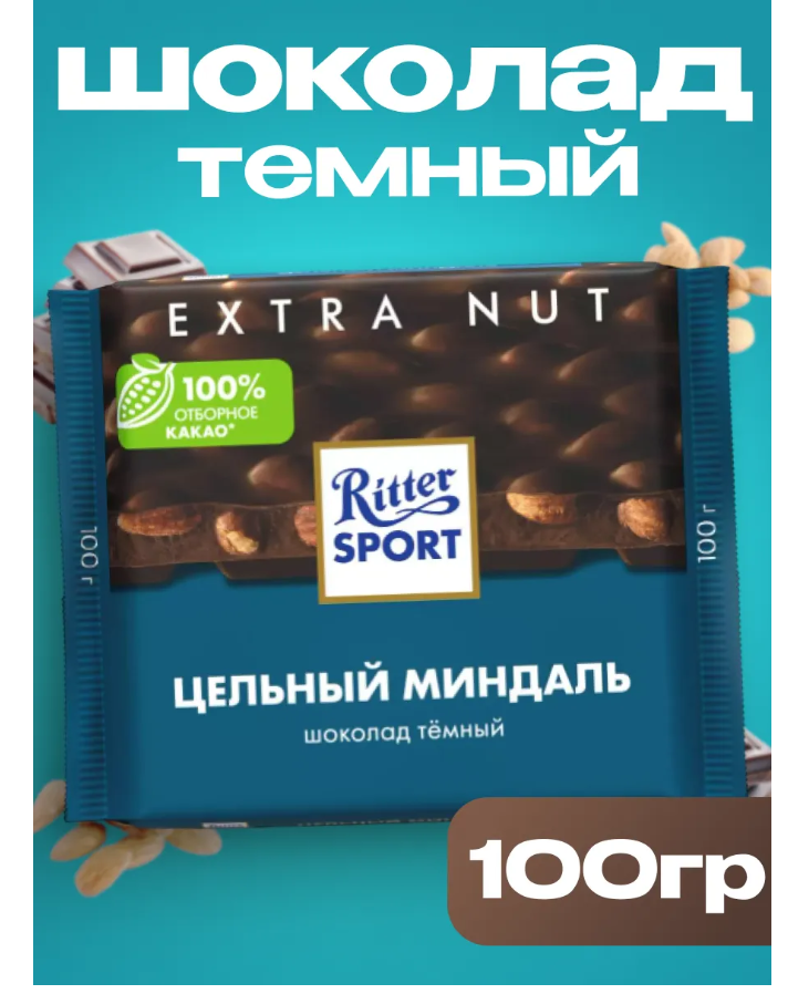 Темный шоколад Риттер спорт с Миндалем, 100 г
